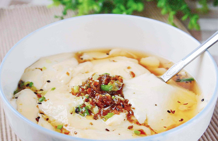 豆腐脑是一道著名的汉族传统小吃,常与豆腐花、豆花混用,依据各地口味不同,北方多爱咸食,而南方则偏爱甜味,亦有地区如四川等喜爱酸辣口味。豆腐脑和豆花都是做豆腐的中间产物,营养成分上并没有太大区别。豆腐脑是最先出来的,比较嫩软,用筷子难以夹起,需用汤勺盛用;等到豆腐脑再凝固一点,就是豆花,与豆腐脑相比口感凝滑,可以用筷子夹起来吃;豆花放入模具里面压实更加凝固之后就是豆腐了。豆腐脑虽与豆腐是同一家族,但又有区别。豆腐是凝固体,豆腐脑是半凝固的流汁。