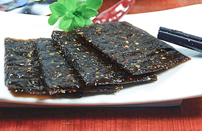 臭干子又名臭豆腐,用黄豆为原料的水豆腐,经过专用卤水(以前多用菜发酵,现在也有用菜加青矾的)浸泡半月,再以茶油经文火炸焦,浇上麻油,辣酱,佐以葱花,酱菜等。臭豆腐中富含植物性乳酸菌,具有很好的调节肠道及健胃功效,可以增进食欲,促进消化;臭豆腐一经制成,营养成分最显著的变化是合成了大量维生素B12,这对预防老年痴呆有积极作用。
