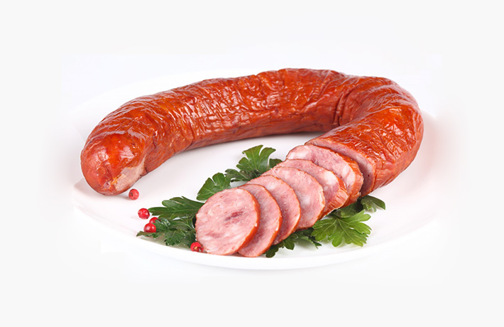 香肠是深受广大消费者欢迎的一种肉类食品,它是以畜禽肉为主要原料,辅以填充剂(淀粉、植物蛋白粉等),然后再加入调味品(食盐、糖、酒、味精等)、香辛料(葱、姜、蒜、豆蔻、砂仁、大料、胡椒等)、品质改良剂(卡拉胶、Vc等)、护色剂、保水剂、防腐剂等物质,采用腌制、斩拌(或乳化)、高温蒸煮等加工工艺制成,它的特点是肉质细腻、鲜嫩爽口、携带方便、食用简单、保质期长