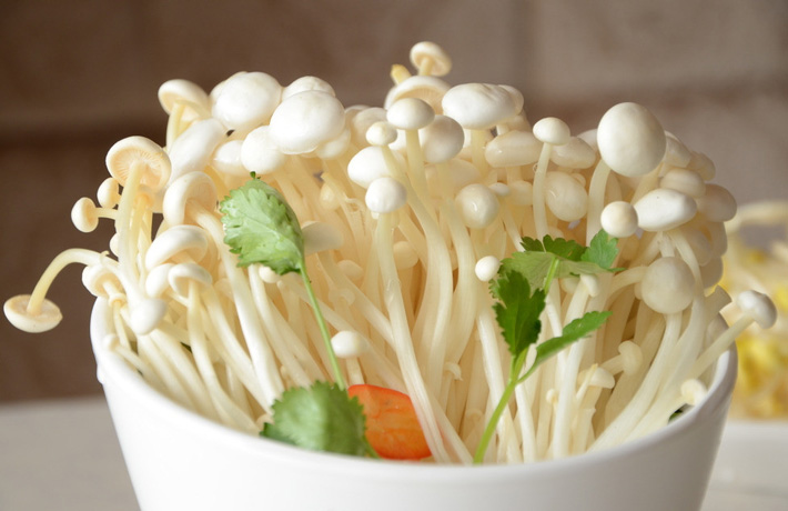 鲜金针菇富含B族维生素、维生素C、碳水化合物、矿物质、胡萝卜素、多种氨基酸、植物血凝素、多糖、牛磺酸、香菇嘌呤、麦冬甾醇、细胞溶解毒素、冬菇细胞毒素等。