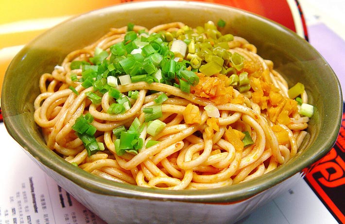 热干面的面条纤细根根有筋力,色泽黄而油润,滋味鲜美。拌以香油、芝麻酱、鲜辣味粉、五香酱菜等配料,因此,在配料上尽量少油一些,以利于血糖和血脂的控制。